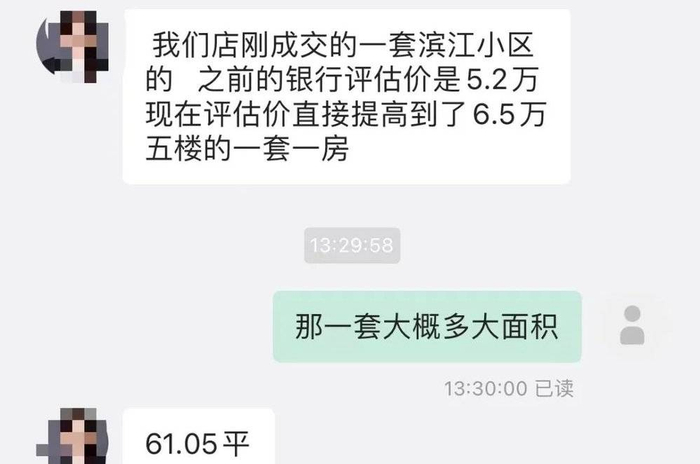 据中介介绍说,滨江小区银行评估价从6月20日就开始涨了。