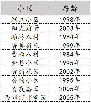 从房龄上看,银行评估价涨到80%的10个小区里,2000年左右的有8个,所以房龄在20年左右的占比80%。