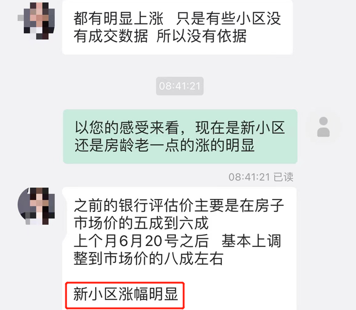 于是,我专门联系了二手中介,来求证一下二手房银行评估价到底有没有涨到80%。