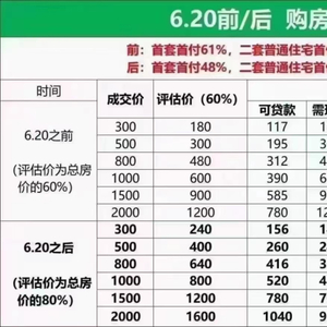 一般来说银行评估价差不多是市场价的60%,现在有的小区最高上涨到八折左右,意味着首套首贷的首付比例从6成降到了5成左右。