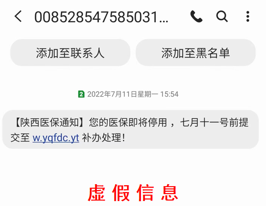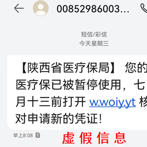 目前,涉及医保进行电信欺诈的问题已经被多部门注意到。陕西警方也发布,近日不少市民收到“医保账户失效”“医保卡升级提醒”“更新医保信息”的“官方”短信。诈骗短信伪装成业务提醒,还将冒充部门的名称用括住,显得官方,增加权威性和迷惑性。陕西警方提醒,陌生短信里的网址链接,切勿轻易点击。凡是陌生网址链接要求输入身份证、银行卡、验证码等个人信息的,务必提高警惕,谨防被骗。如遇可疑情况,可拨打110咨询求助。