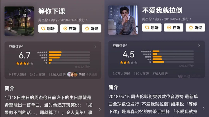 但是随着创作高峰期不再,进入“舒适圈”的周杰伦也渐渐失去了对于音乐审美潮流的引领,偶尔释出的新作品甚至反倒在消耗对其作为音乐IP的信任度。可以看到,近年来,周杰伦也并非满是好评的。