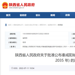 通知指出,《秦咸阳城遗址保护总体规划(2021—2035年)》已经国家文物局和省政府同意,予以公布(规划文本由西安市人民政府发布)。通知要求,西安市政府和省政府相关部门要严格按照 《中华人民共和国文物保护法》和《陕西省文物保护条例》相关规定,切实做好保护规划实施工作,将保护规划相关内容纳入当地国民经济和社会发展规划、国土空间规划,严格落实各项保护措施,确保遗址真实性完整性得到有效保护,促进文物保护与经济社会协调发展。