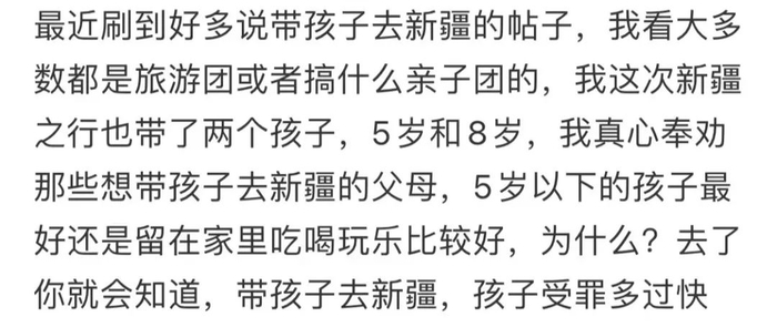 在网上所有对新疆旅游的吐槽中,最让人感到心情复杂的来自那些带孩子的游客。