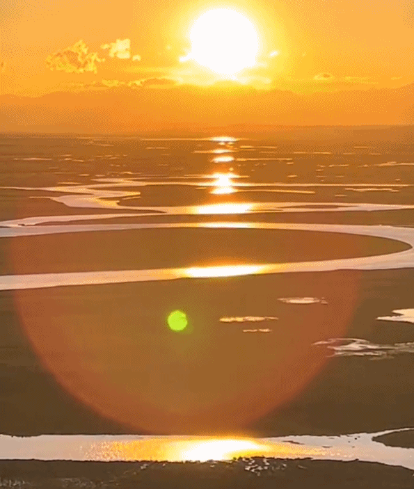 巴音布鲁克有条蜿蜒的河流,夕阳西下时能映出九个太阳的倒影,非常壮观。