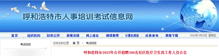 呼和浩特市2022年公开招聘300名社区医疗卫生岗工作人员公告