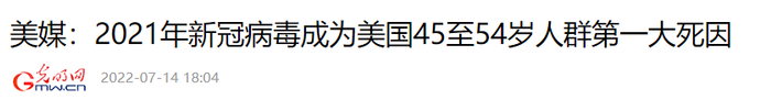 报道二,新冠病毒成为美国45—54岁人群第一大死因,超过心脏病与癌症。