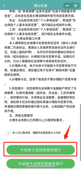 需通过“佛山社保卡”微信小程序进行预约登记,审批通过后到新服务银行网点办理换卡;或直接携带有效身份证原件、旧社保卡原件到意向的新服务银行网点柜台进行现场预约登记,审批通过后方可换卡。