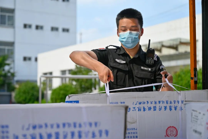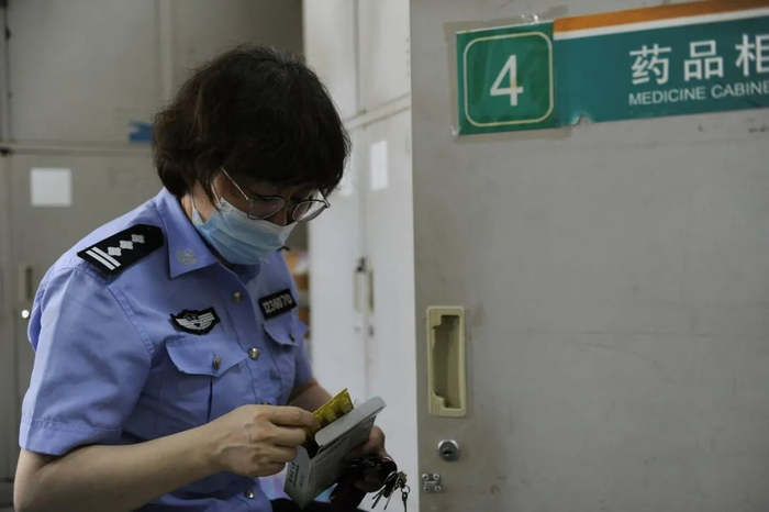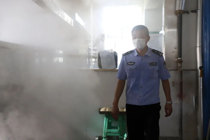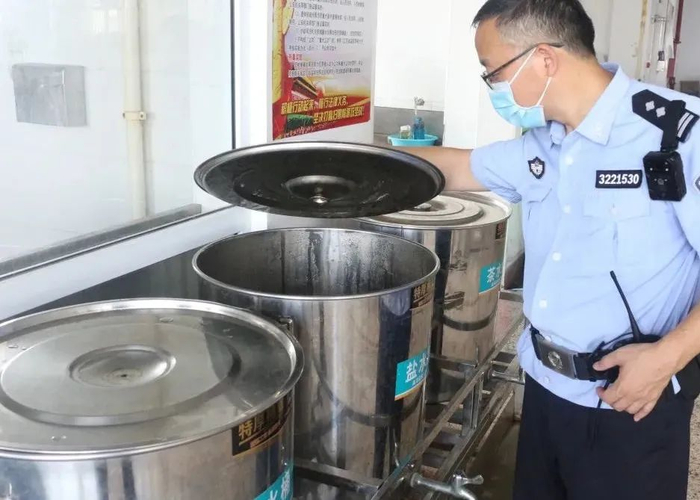正在检查为罪犯准备的防暑降温饮品