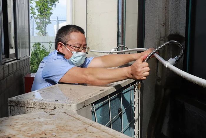正在对空调外机进行检查维护