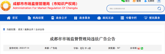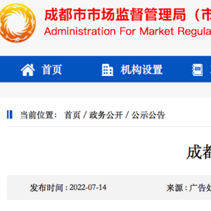 近日,四川省成都市市场监管局