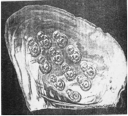 “佛像珍珠样品此时通过自己的方式进入到欧洲和美国的公共场所或私人橱柜。这些佛像珍珠一般约14厘米长、10厘米宽,包含两到三排珍珠或模像;每个膜瓣的前端约有25颗,后端有16颗。”“来自当时的一些欧洲旅行者的描述在今天看来仍充满了神奇色彩。据说,当蚌在水面游泳时,将佛像扔进蚌体,蚌贝沉入水底,就孕育出了珍珠。”(1853美国麦嘉湖《中国的珍珠和珍珠制造》)