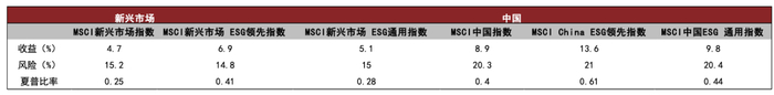 图表: MSCI新兴市场与中国ESG指数绩效总结
