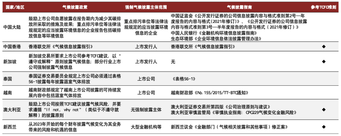 注:“◆”表示当地气候披露政策参考TCFD准则。