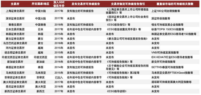 图表: 亚太地区主要证券交易所参与SSE倡议情况