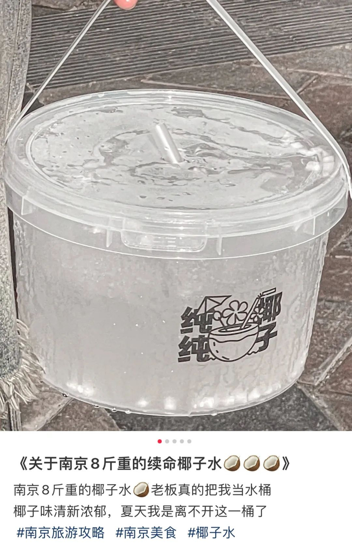 推出桶装饮料不仅有奶茶和果茶,4升装绿豆冰沙、4升椰子水以及主打超大桶的咖啡,也在社交平台开始风靡。