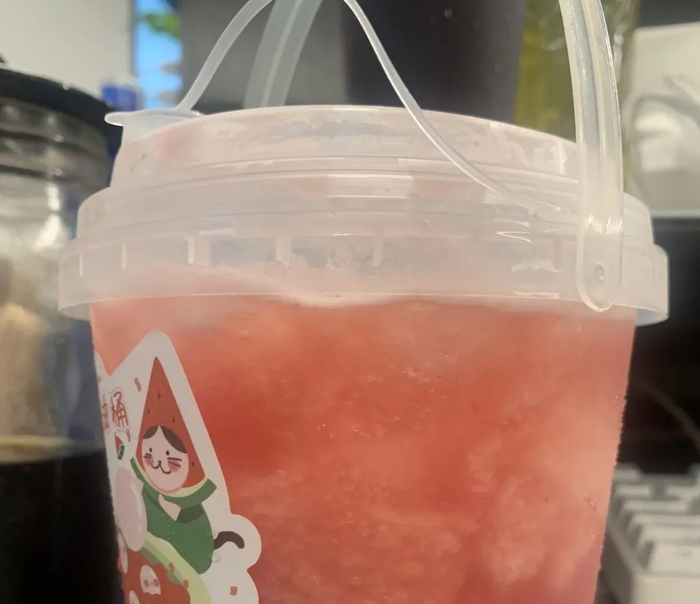 我本以为是保温饭盒,凑近看才发现,大家外卖点的奶茶容器都从杯装升级成了桶。