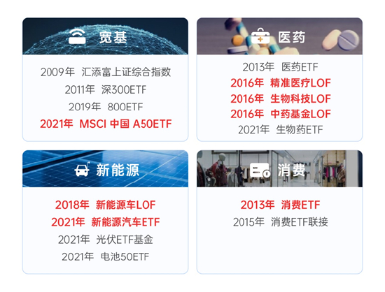 目前指数产品已经从重点宽基到行业主题,形成了多层次、多维度的体系化格局。消费ETF、新能源车LOF、中药基金LOF等都是同类主题中布局较早、投资体验好、广受认可的指数产品。