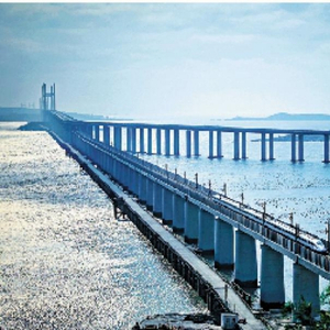 图:列车经过京福高铁重要延伸段,福平铁路平潭海峡公铁大桥。\中新社