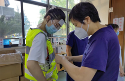 为应对此轮高温,虹口区紧急采购调运了大冰块、冰袋降温背心“冰马甲”等,在部分采样点位和扫码通道增设大功率风扇,各街道也精心选择了一些空旷、阴凉的地方作为检测点,并且尽量合理安排筛查时间,避开太阳直射,为参与核酸检测采样的医务人员和居民降温,同时对一些体弱多病的居民上门检测,尽可能做好防疫服务工作。