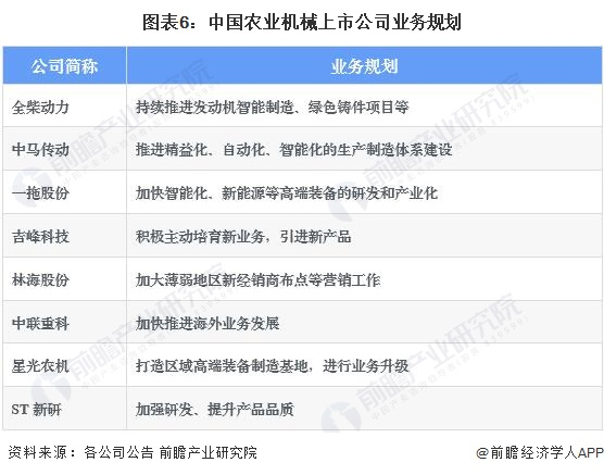 从农业机械行业的上市公司最新规划来看,推进智能化改造和推动产品升级成为众多公司的主要任务,除此以外拓展营销渠道也是部分企业的工作重点。中国农业机械上市公司业务规划主要内容如下: