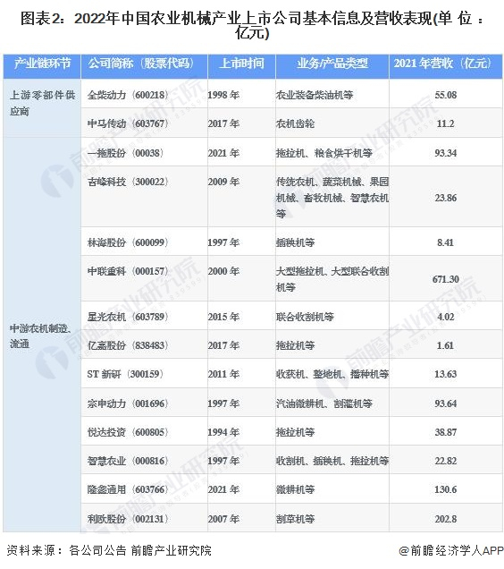 【最全】2022年农业机械行业上市公司全方位对比(附业务布局汇总、业绩对比、业务规划等)