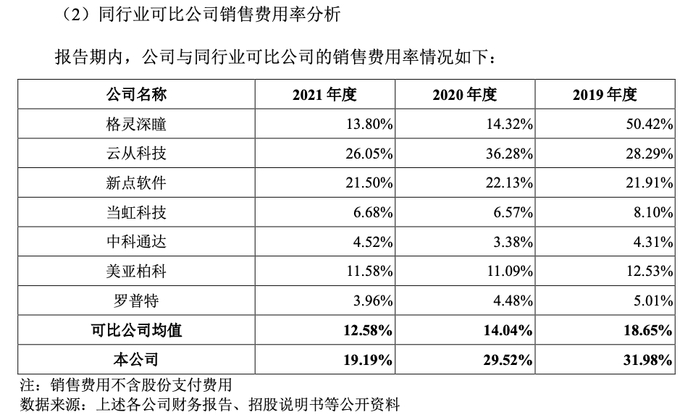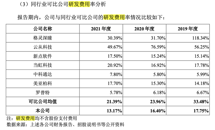 回顾过往的研发情况,报告期内公司的研发费用分别为1766.94万元、2433.13万元及4882.77万元,而销售费用分别为3184.35万元、4377.81万元、7115.20万元,而与同行相比,公司的研发费用率低于行业均值,销售费用率高于行业均值。