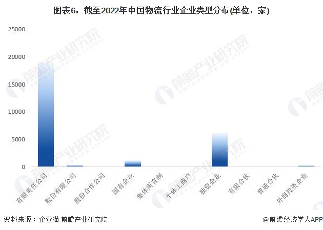 根据中国企业数据库企查猫,目前我国物流行业存续和在业的企业共19496家,企业类型主要以有限责任公司为主,目前共有19130家,其次为独资企业的6185家。