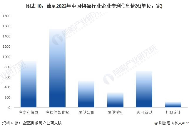 根据中国企业数据库企查猫,目前中国物流行业存续和在业的企业共19496家,其中912家企业有专利信息,1545家企业有软件著作权。在专利信息中,物流行业企业以实用新型专利为主,拥有实用新型专利的企业有725家,申请发明公布的企业有528家。