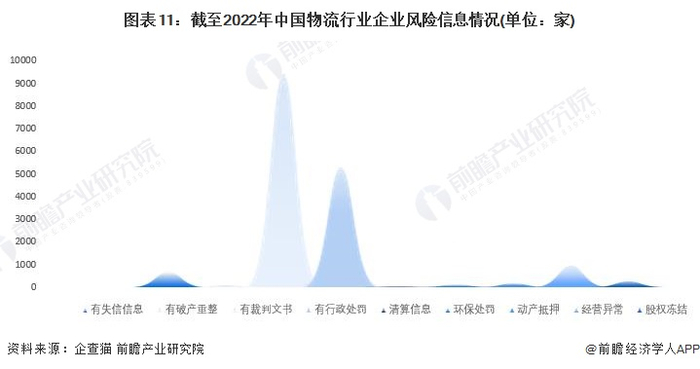 根据中国企业数据库企查猫,目前我国物流行业存续和在业的企业共19496家,其中9420家企业有裁判文书,972家企业存在经营异常,5298家企业有行政处罚。