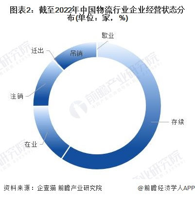 根据中国企业数据库企查猫,目前中国物流行业的存续企业14861家,占总企业数的59.39%;在业企业数量达3867家,占比为15.46%;注销企业数量占总企业数的13.07%,吊销企业数量占总企业数的12.01%。