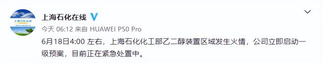 2022年6月18日4:00左右,位于上海市金山区的上海石油化工有限公司乙二醇装置区域突发爆炸起火。