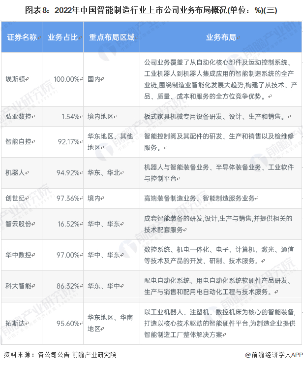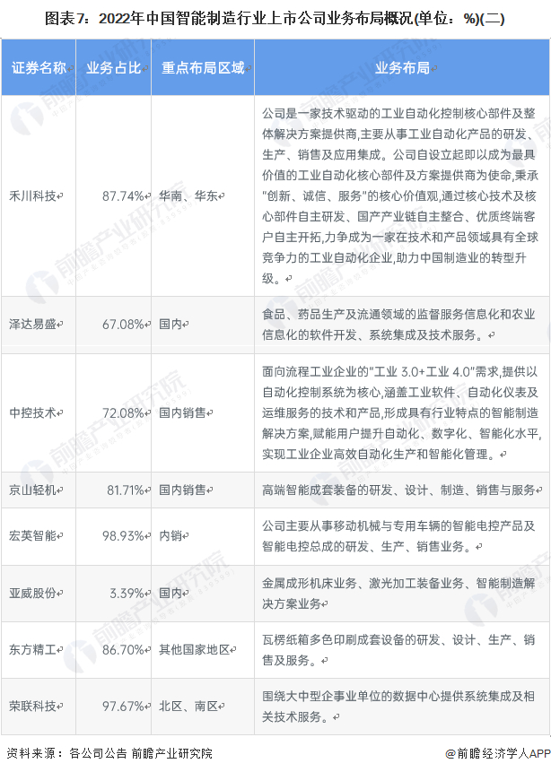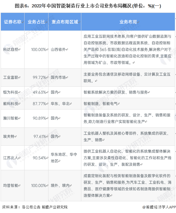 6、中国智能制造行业上市企业布局