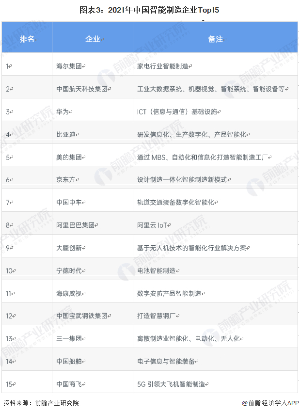 3、中国智能制造行业市场排名
