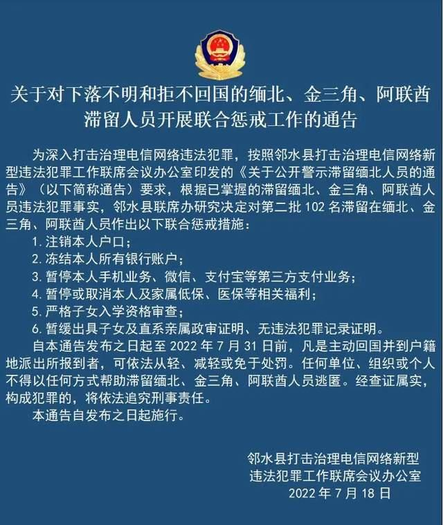 四川邻水:对下落不明和拒不回国的缅北、金三角、阿联酋滞留人员开展联合惩戒