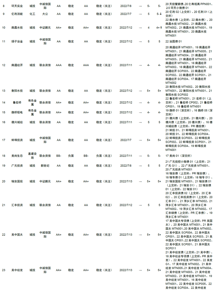 本文摘自:2022年7月18日已经发布的《中国信用债评级调整周报》