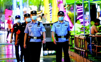 夏日里,无论是曲折蜿蜒的里弄巷子,还是人声鼎沸的广场、商业街,都可以看到来回行走的“蓝色”身影,民警们正在进行巡逻。
