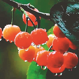 小时候,我们这儿几乎家家园子里都种着樱桃。樱桃是北方最早成熟的水果,素以“春果第一枝”而闻名。樱桃确实聪明,不与其它果木为伍,先行争春绽放,填补寒暖之隙的“果荒”,尤为惹人怜爱。一丛丛绿枝蓬勃,一夜春风,一颗颗绿宝石变成红玛瑙,红红的小果实就张扬着挂满了枝头,像一串串待燃的鞭炮。樱桃的果实酸酸甜甜的,极大刺激着我们饥渴的味蕾。樱桃也成了邻居间彼此相互馈赠的礼物,成为沟通感情的媒介。熟透的樱桃落地,来年就钻出许多嫩芽。可见樱桃具有超强的生命力。