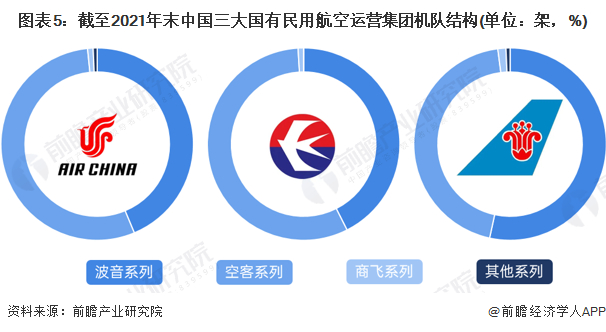 以我国三大国有民用航空运营集团东航、南航和国航2021年末的机队构成来看,我国民用在营的民用飞机依旧被波音和空客两家国际巨头所垄断。