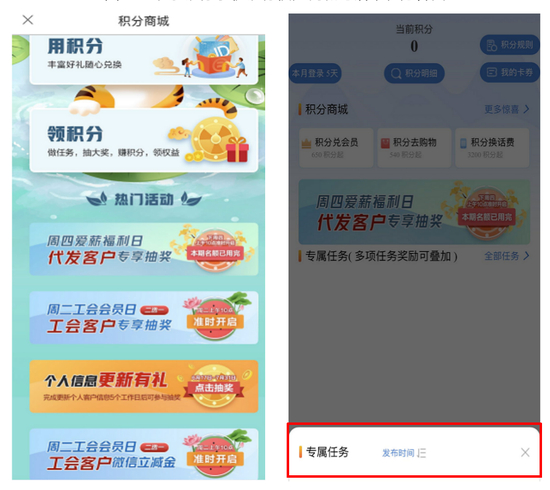 图 2:北京银行手机银行积分商城与活动任务界面