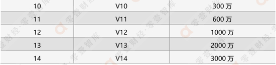 表 6:中原银行手机银行设计的14个等级星级