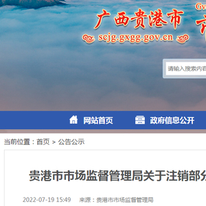 中国质量新闻网讯 2022年7月19日,广西贵港市市场监督管理局网站发布关于注销部分特种设备使用登记的公告(2022年第六批)。