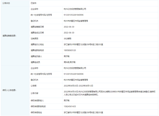 关于注销备案,最新的工商信息显示,杭州幻方已决议解散,自2022年6月30日至2022年8月13日为公告期。