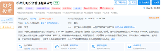 点开企查查列示的杭州幻方信息,页眉处的标签有些目不暇接:#投资机构#,#私募基金管理人#,#小微企业#,#注销备案#,#经营异常#。
