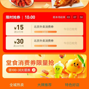 美团数据显示,北京餐饮消费券上线仅6分钟,平台上四种面额的餐饮消费券已全部领取完毕,美团餐饮堂食满100减30元消费券,仅用68秒被一抢而空。