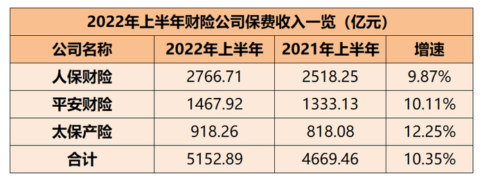 车险增速持续回暖,3家财险公司上半年保费平均增速达10.35%。人保财险实现保费收入2766.71亿元,同比增长9.87%;平安财险实现保费收入1467.92亿元,同比增长10.11%;太保产险实现保费收入918.26亿元,同比增长12.25%。