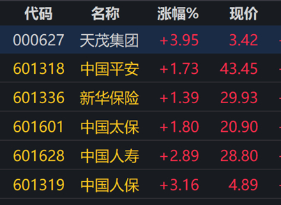 7月18日,A股三大股指数收涨,保险板块也迎来上涨。参股国华人寿的天茂集团上涨近4%,中国人保涨幅超3%,中国人寿涨2.89%,中国太保、中国平安上涨近2%。