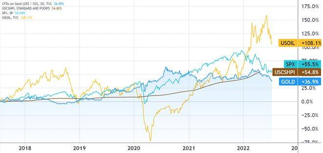 人们应该问的第一个问题是:黄金在过去五年中是一种很好的价值储存手段吗?为了找到答案,交易者必须将其价格与全球股票、石油和房地产等其他万亿美元资产类别进行比较。任何价值存储的总体目标是保持购买力,而不管该期间的价格波动如何。