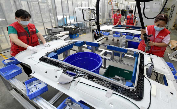 7月19日,位于文安县的廊坊中德汽车座椅制造有限公司,工人正在加工汽车座椅。