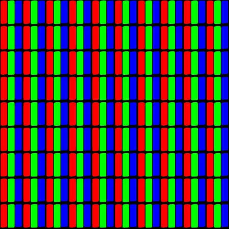 这样的排列,由于将一颗方形的像素均匀地分为三等份,就是 LCD 中最普遍的标准 RGB 排列了。